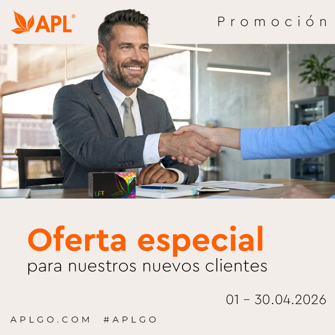 *La cancelación de la tasa de 25 u. c. por la activación de la cuenta personal en el sitio web backoffice.aplgo.com tendrá lugar al registrarte en el sitio web del 01.04.2026 al 30.04.2026 y realizar un pedido por vez primera.